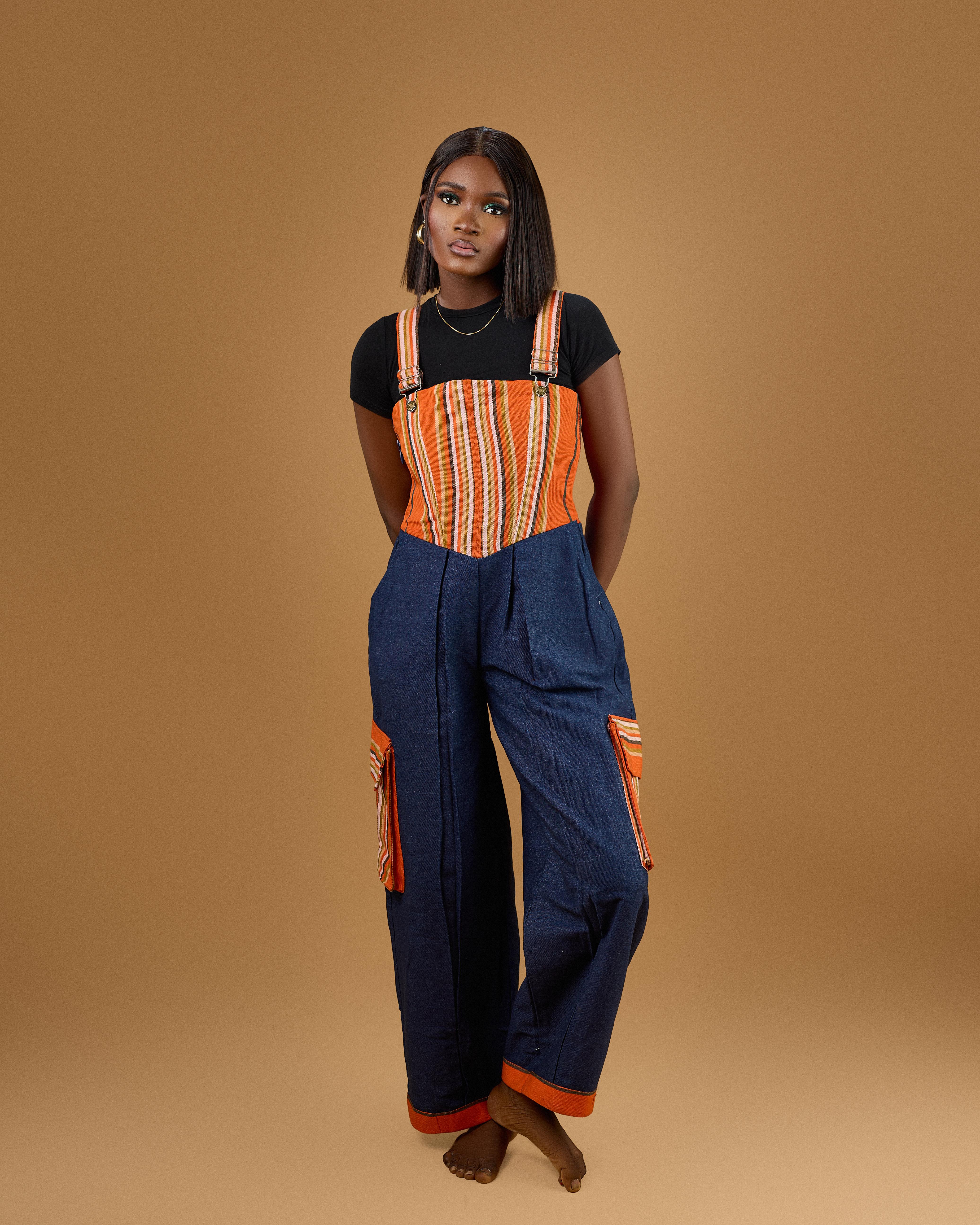 The Iseyin Piece – Aso Oke & Denim Dungaree