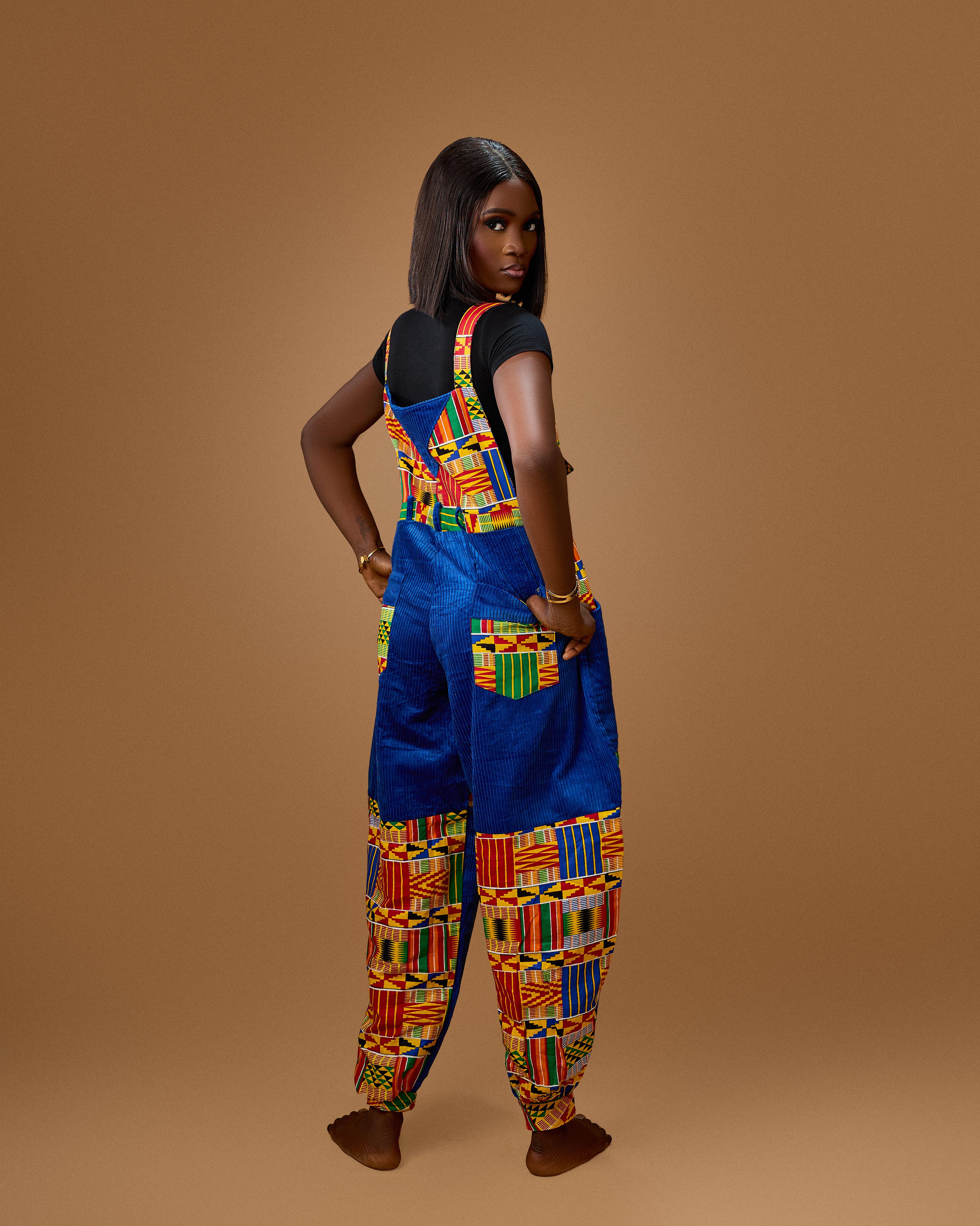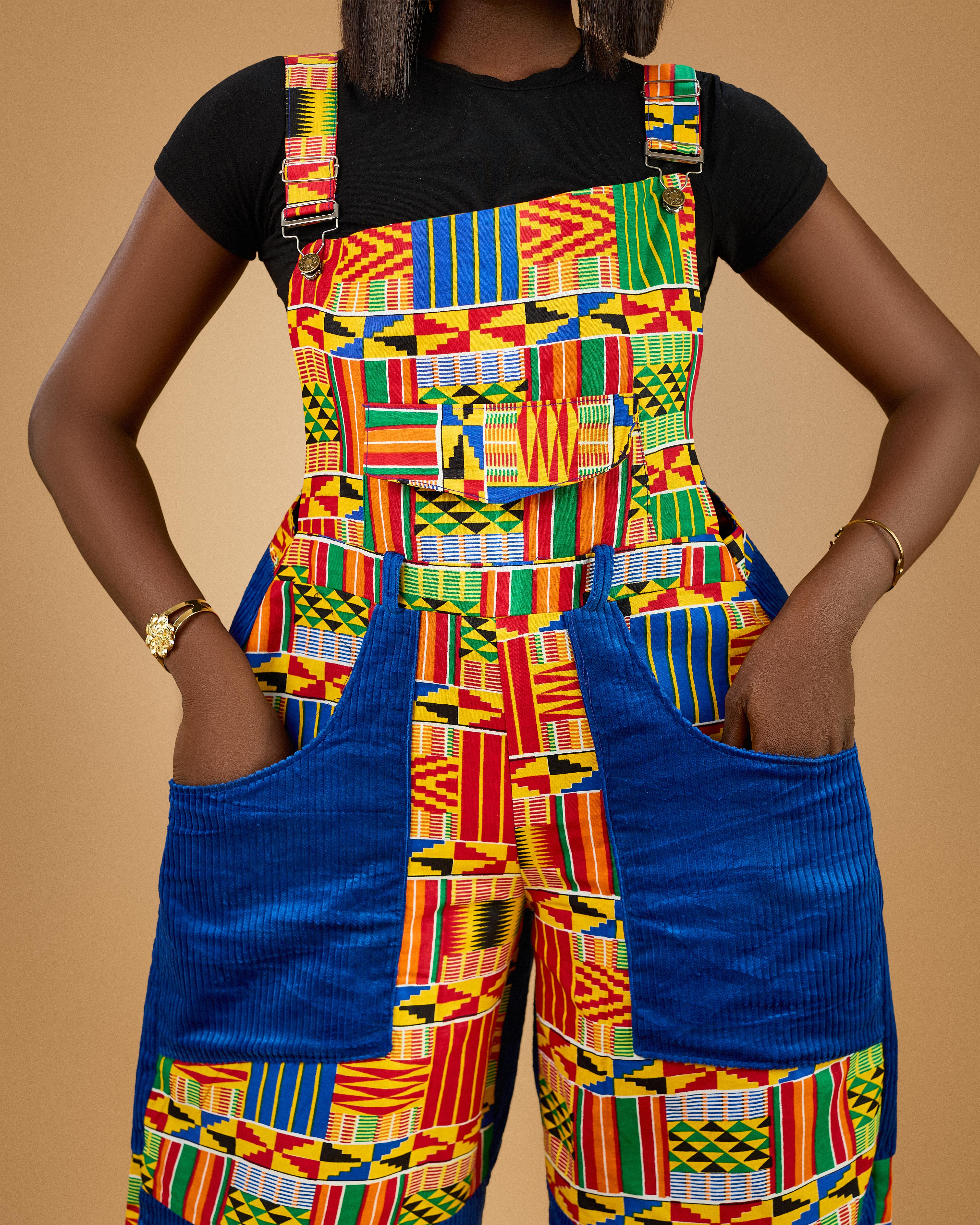 Accra Piece – Unisex Everyday Dungarees in Ankara-Inspired Kente