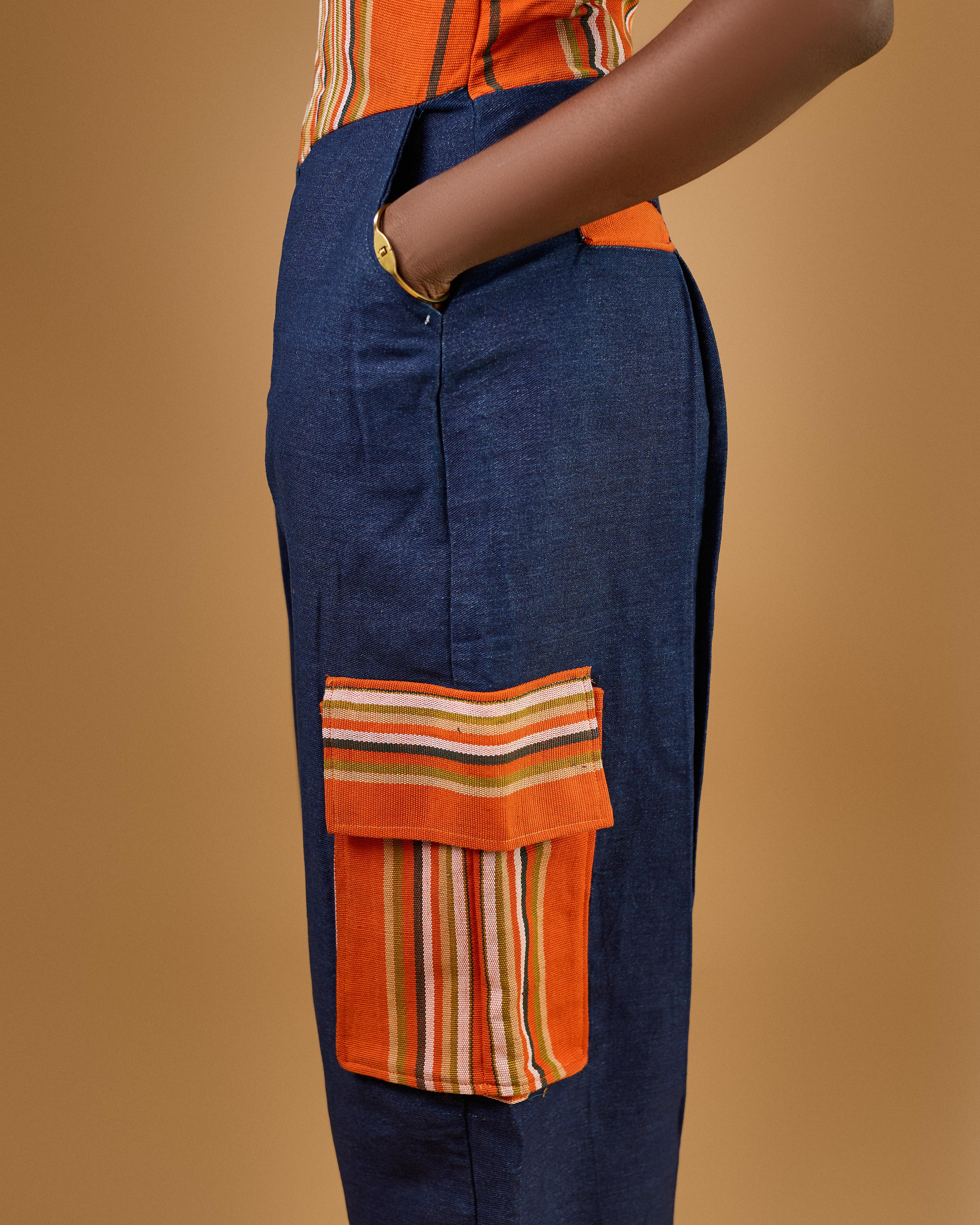 The Iseyin Piece – Aso Oke & Denim Dungaree