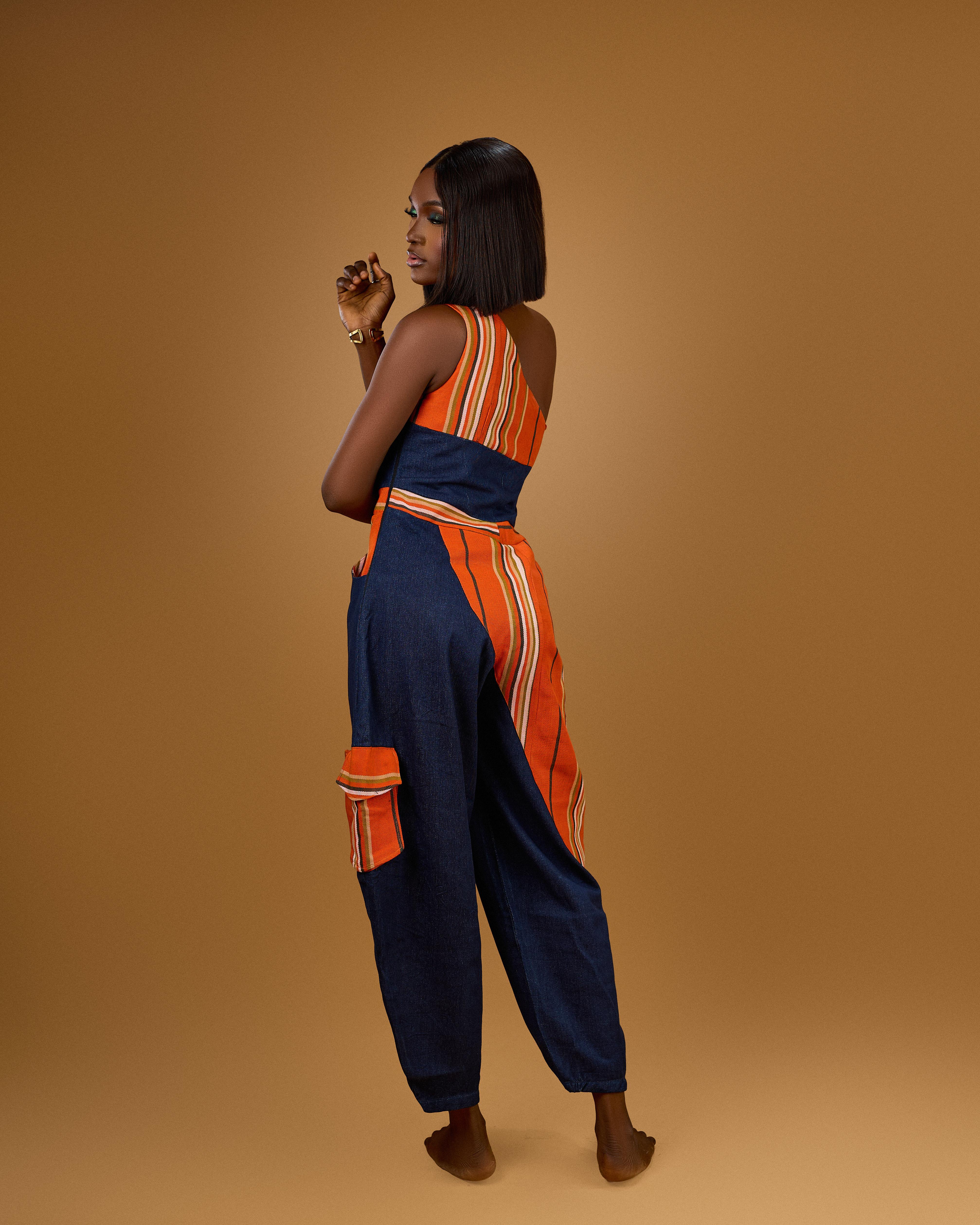 The Oshogbo Piece is a fearless celebration of tradition and innovation. Cut from bold striped Aso Oke and deep denim, this piece fuses Yoruba textile heritage with a modern, sculptural silhouette. Inspired by Oshogbo’s rich artistry, it transforms cultural craft into contemporary statement wear.